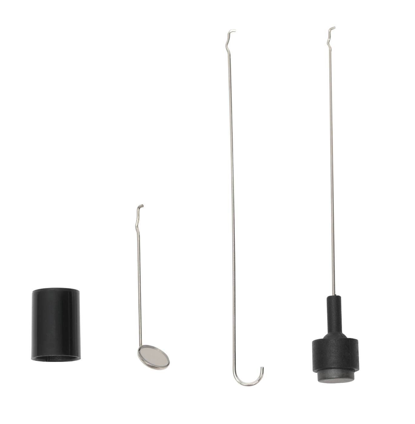Tilbehør som speil, krok og magnet gjør det enkelt å plukke opp gjenstander som er mistet. Leveres i robust plastboks med speil, krok og magnet, samt bruksanvisning. Batteritype AA inngår ikke.