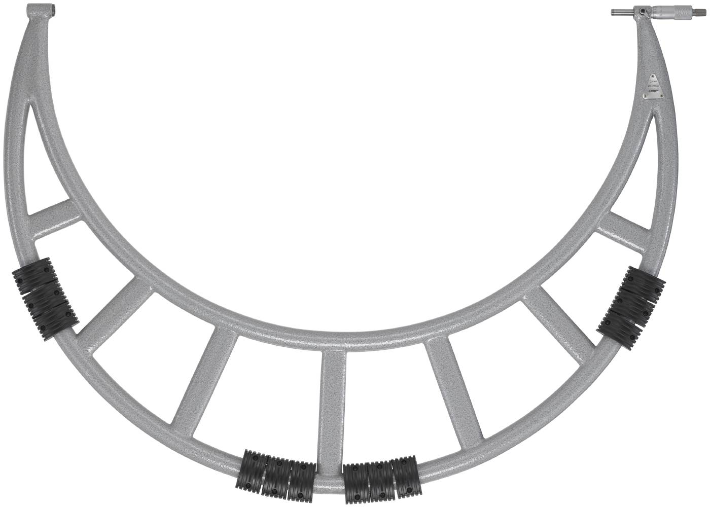 Mikrometr kabłąkowy z regulowanymi trzpieniami pomiarowymi i stałymi tulejami dystansowymi. Lakierowany kabłąk o lekkiej konstrukcji stalowej, hartowane wrzeciono o średn. 8.0 mm z dokładnie docieranymi powierzchniami pomiarowymi z węglików spiekanych. Wykonanie zgodne z DIN 863.