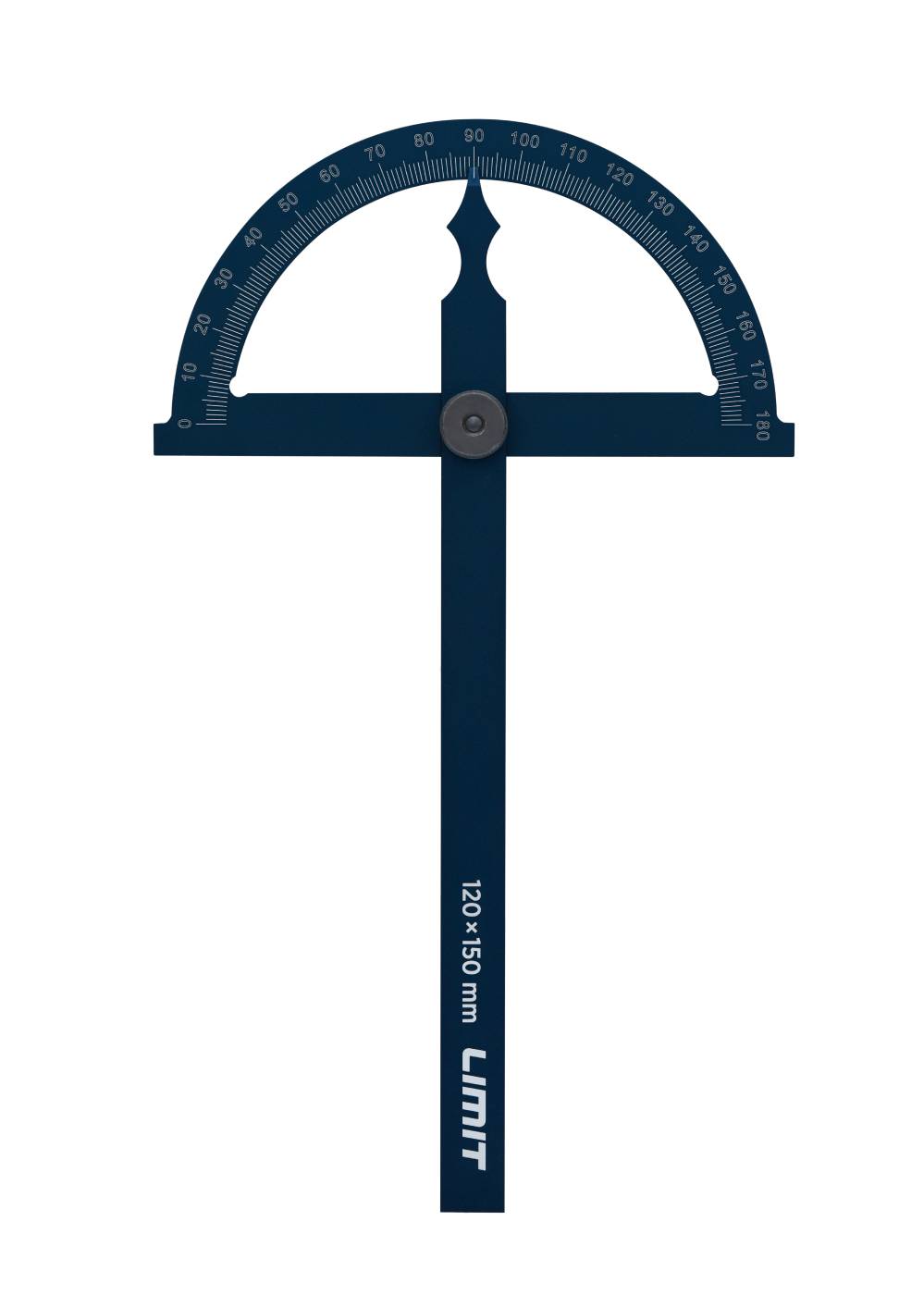 Kątomierz tarczowy wykonany z chromowanego na mat aluminium. Tarcza posiada podziałkę w zakresie 0-180°, śruba blokująca ustala tarczę pod dowolnym kątem.