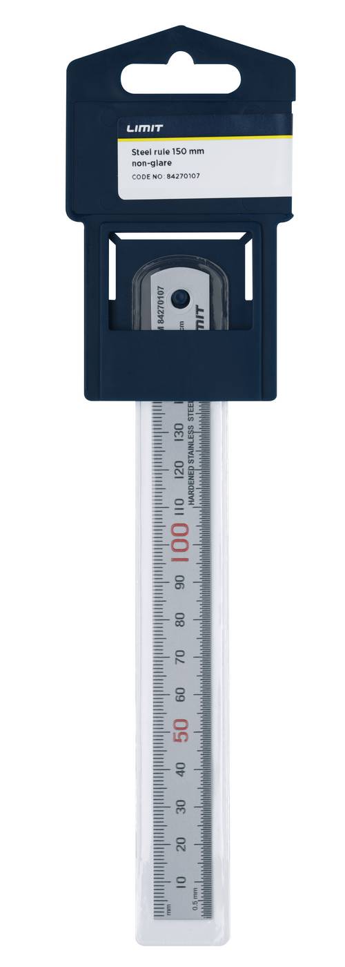 Przymiar kreskowy stalowy z hartowanej stali nierdzewnej. Z powierzchnią chromowaną na mat, zapewniającą bezodblaskowy odczyt. Długości 150, 300 i 600 mm mają podziałkę milimetrową naniesioną przy krawędzi górnej i półmilimetrową przy krawędzi dolnej. Długości 1000, 2000 i 3000 mm mają przy krawędzi górnej, na odcinku pierwszych 100 mm, naniesioną podziałkę półmilimetrową, a przy krawędzi dolnej milimetrową na całej długości. Wszystkie przymiary są wolne od oznaczeń po spodniej stronie.