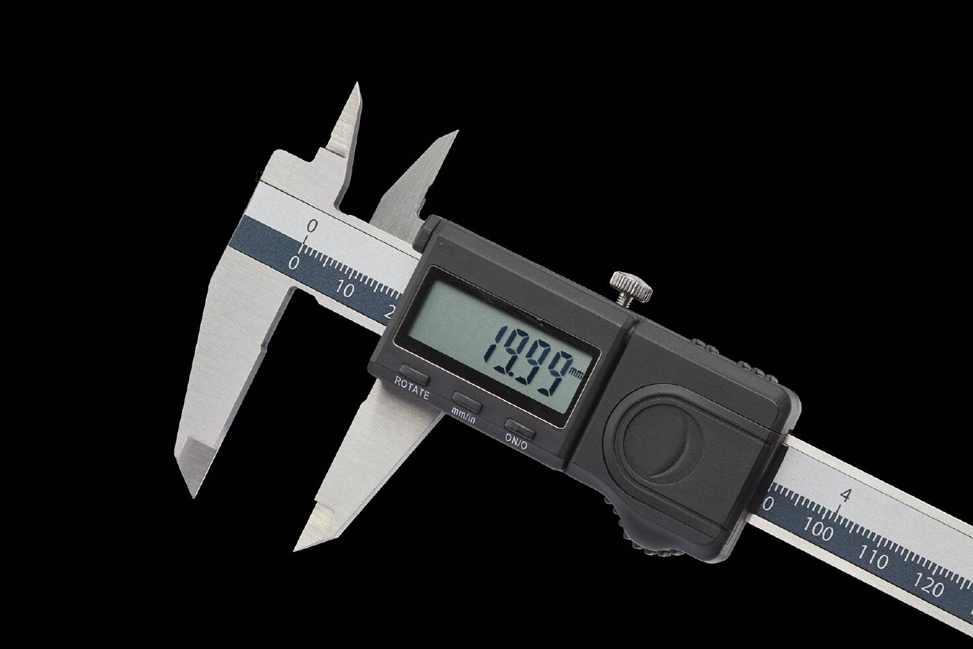 Digital Vernier calipers with unique flexible display. Digital Vernier calipers with unique, patented flexible display solution. Thanks to the foldable rotating display, it can be used either right or left-handed, and for measurements from above and below. This means that you can read off the measurement on the display even in the tightest spaces, such as the inside of a machining centre or CNC lathe. With Absolut system and temporary zero point adjustment. Stainless steel, hardened and precision ground measurement jaws. Jaw thickness 3.5 to 4 mm provides great stability. LCD display with clear 7.5 mm high digits. 4-function. Processor with update speed (1.5 m/sec). Switch between metric and imperial. Equipped with rectangular depth measurement gauge and tips for internal measurements. Manufactured according to DIN 862. Supplied in a case with inspection certificate. Battery type CR2032, included.