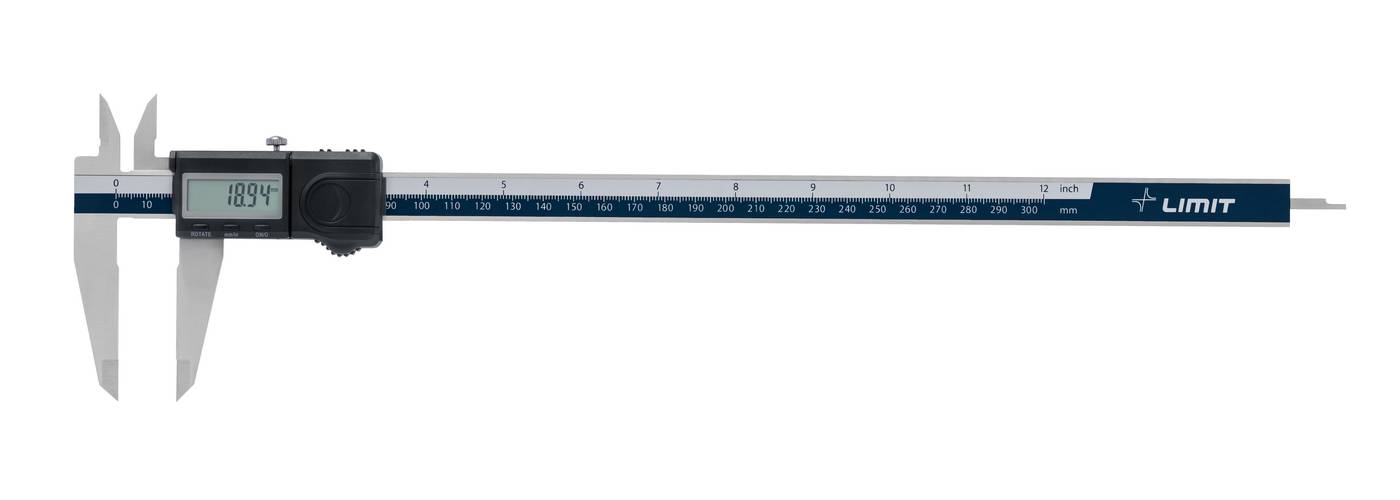 Digital Vernier calipers with unique flexible display. Digital Vernier calipers with unique, patented flexible display solution. Thanks to the foldable rotating display, it can be used either right or left-handed, and for measurements from above and below. This means that you can read off the measurement on the display even in the tightest spaces, such as the inside of a machining centre or CNC lathe. With Absolut system and temporary zero point adjustment. Stainless steel, hardened and precision ground measurement jaws. Jaw thickness 3.5 to 4 mm provides great stability. LCD display with clear 7.5 mm high digits. 4-function. Processor with update speed (1.5 m/sec). Switch between metric and imperial. Equipped with rectangular depth measurement gauge and tips for internal measurements. Manufactured according to DIN 862. Supplied in a case with inspection certificate. Battery type CR2032, included.