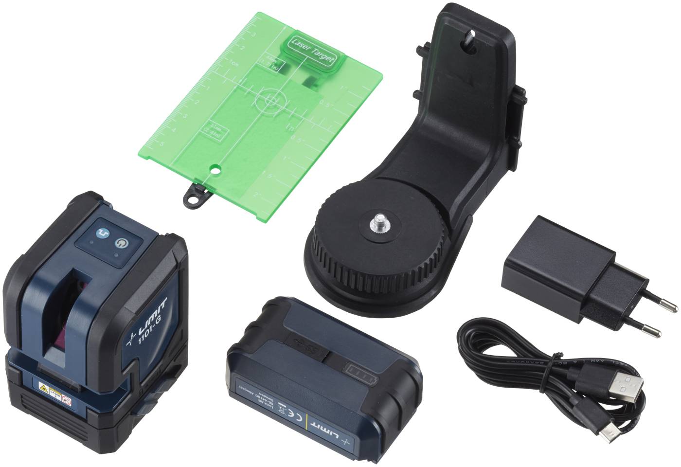 Cross line laser with very bright green laser light that provides a horizontal and a vertical line which runs 120 degrees up to the ceiling. Self-levelling function warns with flashing lines when the incline exceeds the self-levelling range. Alternatively, self-levelling can be disconnected to show a sloping line. Mechanical locking of the pendulum acts both as a main switch and transport lock. 2 laser diodes class 2, <1mw 635 nm. Can be used in bright rooms with a separate laser receiver 244652517 (not included) for up to 50 meters. Supplied with rechargeable battery with charger and USB cable, magnetic wall bracket and reflective target plate in a soft case.