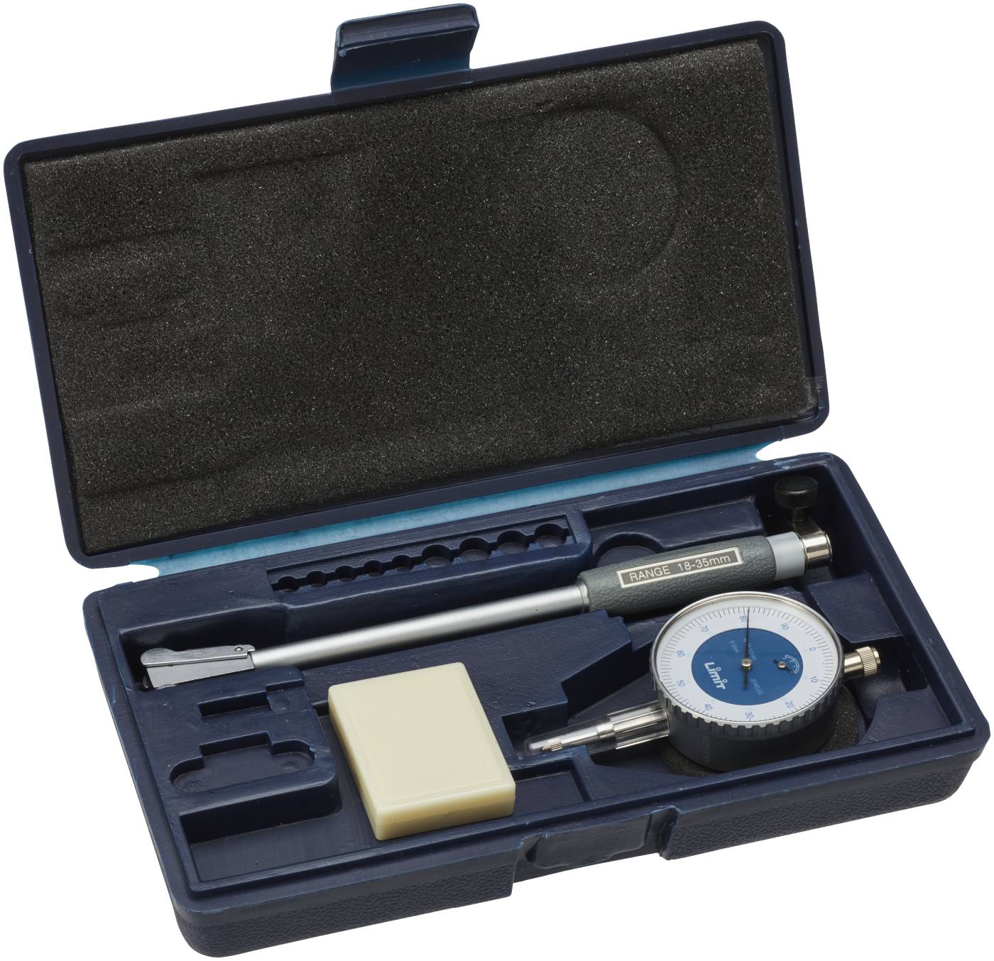 For precision measurements in holes and grooves. Equipped with interchangeable measuring tips and spacers for different dimensions. The indicator is centred automatically with a spring-loaded support and has a tungsten carbide coated measurement tip. Complete with dial gauge. Accuracy is ± 15 μm plus the gauge accuracy according to DIN 878. The bottom hole can be measured from the bottom. 61931002: 10, 11, 12, 13, 14, 15, 16, 17, 18mm 61931101: 18,20,22,24,26,28,30,32,34mm 61931200: 35, 40, 45, 50mm 61931309: 50, 55, 60, 65, 70, 75, 80, 85, 90, 95, 100, 105mm 61931408: 160, 170, 180, 190, 200mm