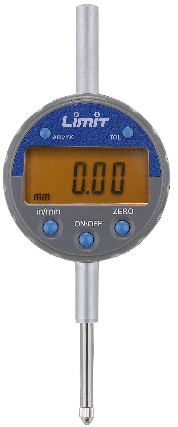 Digital dial gauge. Tolerance function. Switch between absolute and incremental measurements. Zeroing. Switch between metric and imperial. DIN 878. Battery type CR2025, included.