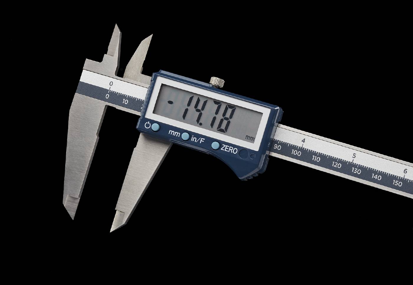 Digital Vernier calipers with large LCD screen with 13 mm large digits for quick reading of measurement results. Can measure inner diameter, outer diameter, depth, height and scribing function. Stainless steel scale. Reading in mm or inches, response time 3.0 m/second, automatic shut-off. Absolute measurement and zero setting in all positions. Manufactured according to DIN 862. Battery type CR2032 included.