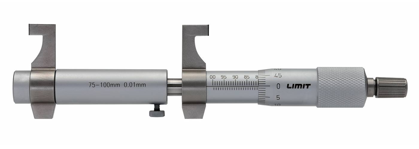 Inside micrometer, forged with matt chrome-plated scale. Hardened and fine-polished measuring faces. Friction screw and locking screw. Manufactured according to DIN 863. Supplied with setting ring.