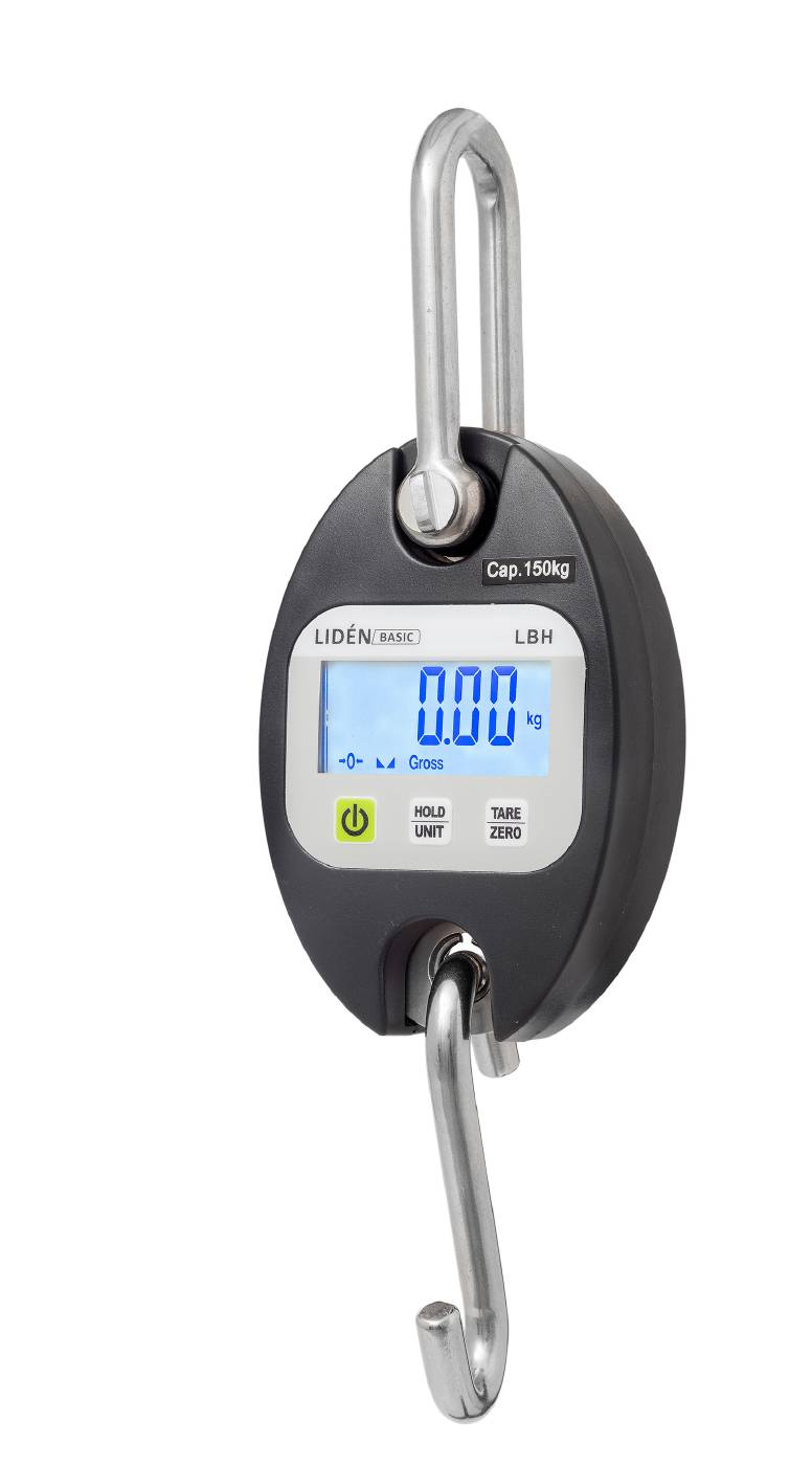 LBH-Series. Compact, lightweight, portable and easy to use hanging scale in plastic housing. Capacities 30/60/150 Kg. Tare and hold function. Auto off function to save batteries. 3 x AA batteries and hook included. 25 mm wide angle LCD display.