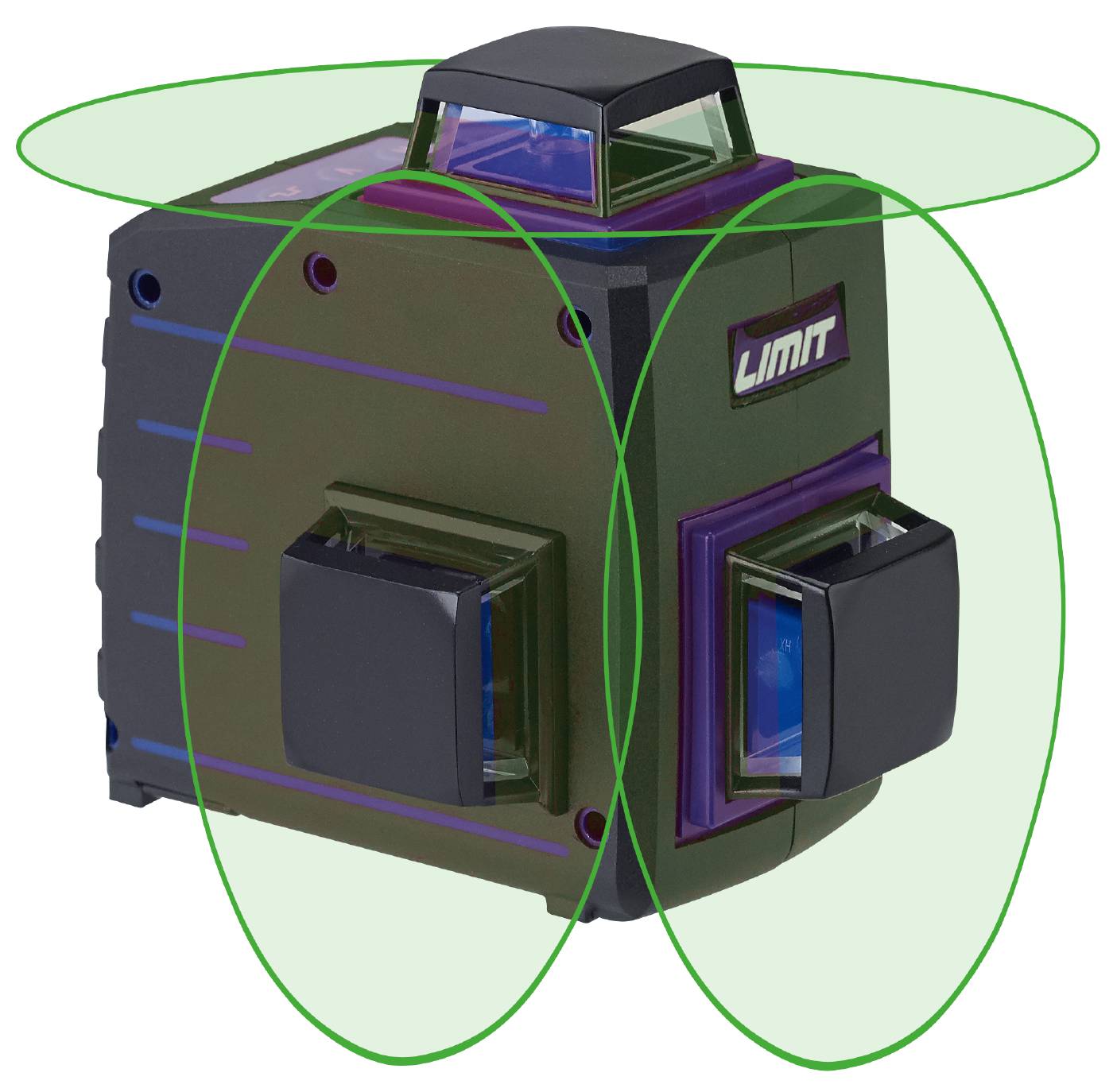 Multi cross line laser with green laser light that shows 3 very bright 360° lines. One horizontal 360° line and two vertical 360° lines that are lit at 90° to each other. The lines can be lit individually or together. Laser with green light offers 4 times more visibility compared with red laser light, making it ideal for use in bright environments and/or over long distances. Self-levelling with magnetic damping compensator. A buzzer sounds and lines flash when the incline exceeds the self-levelling range. Self-levelling can be switched off when you want to show an inclined plane by mechanically locking the pendulum mechanism, which functions as both a main circuit breaker and a transport lock. Limit 1080 also features a pulsating light for use outdoors and in bright rooms together with a separate laser receiver 178620308 (not included).