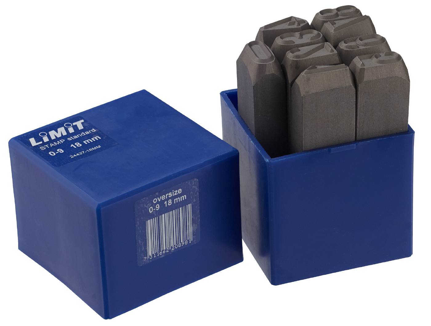 Large stamps for steel and metal. 9 stamps, numbers 0-9. For stamping in materials with a tensile strength up to 150 kp/mm². Made of hardened tool steel and packed in a plastic case.CNC produced for maximum precision.Symbols according to DIN 1451 (narrow)Hardened on the engraving side according to 58–61 HRCSupplied in a strong, impact resistant plastic caseAssorted stamps can be purchased loose, but there is a minimum of 5 pcs per order.