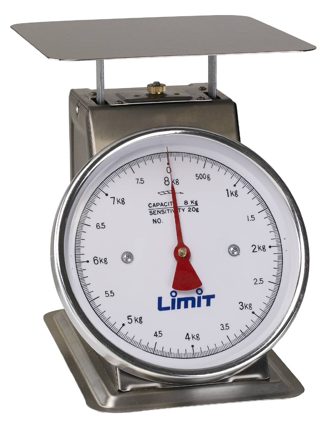 Dial and analogue display. For storerooms, warehouses, offices and factories etc. The precision is better than scale graduation. Stainless weighing plate and casing. Large and easy to read scale with protective glass for hand and face. Zero point tarring range about 5% of the capacity.