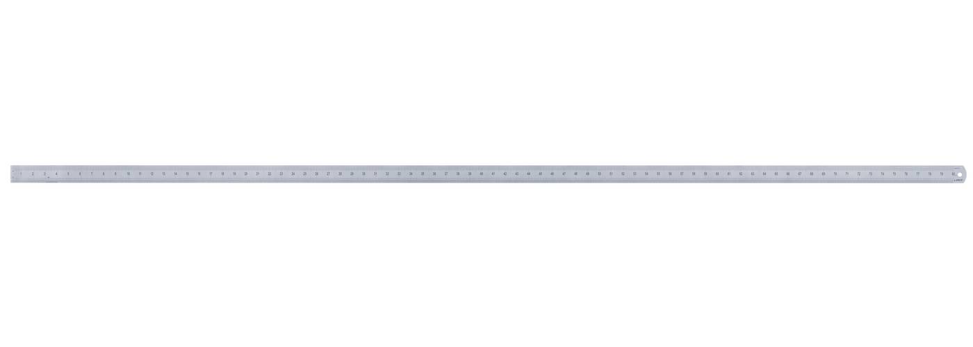 Steel rule made of hardened stainless steel. Matt chromium-plated finish for glare-free reading. Lengths 150, 300 and 600 mm are graduated in millimetres on the top edge and half millimetres on the bottom. Lengths 1000, 2000 and 3000 mm are graduated in half millimetres on the top edge up to 100 mm and then in whole millimetres. The bottom edge is graduated in whole millimetres along the entire length. All rules have a blank back side.