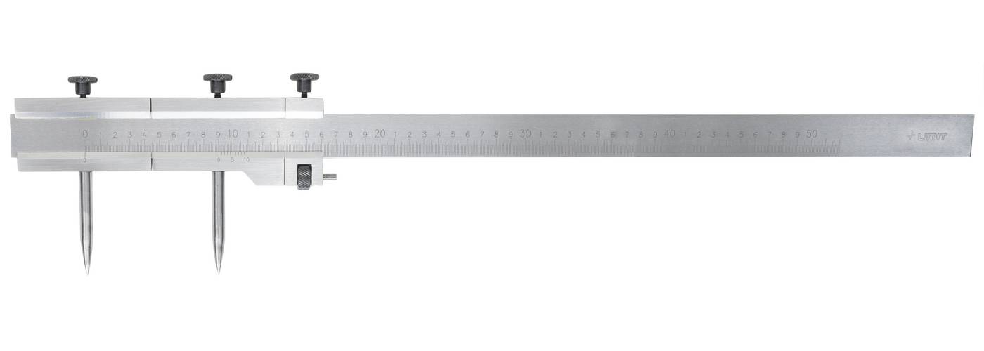 Flat beam and with fine adjustment. Interchangeable hardened scriber. Reading 0,1 mm.