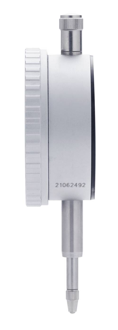 Med vridbar skala och två ställbara toleransmärken. Extra visare som anger hela millimeter. Stomme av aluminium. Utbytbar mätspets. Utan fästöra. Tolerans enligt DIN 878.