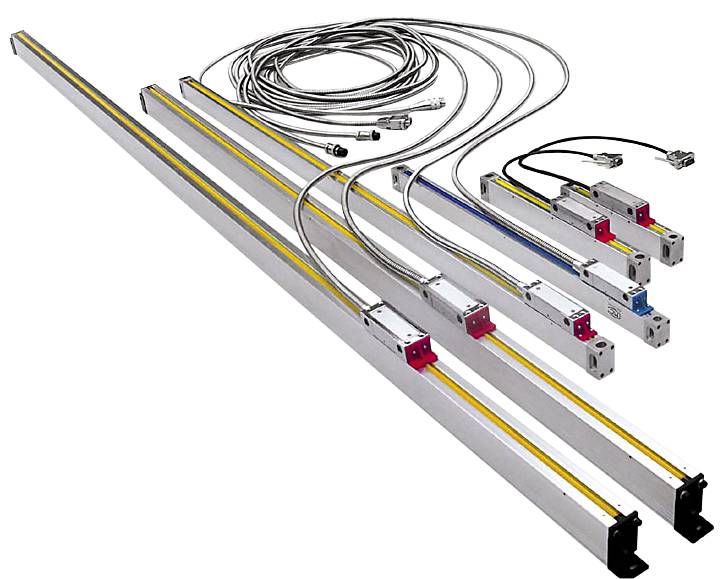 För inställning och positionering av svarvar och fräsmaskiner. Linjära skalor med fotoelektrisk avläsningsteknik. Komplett inkl. kabel, skyddsplåt och monteringstillbehör.