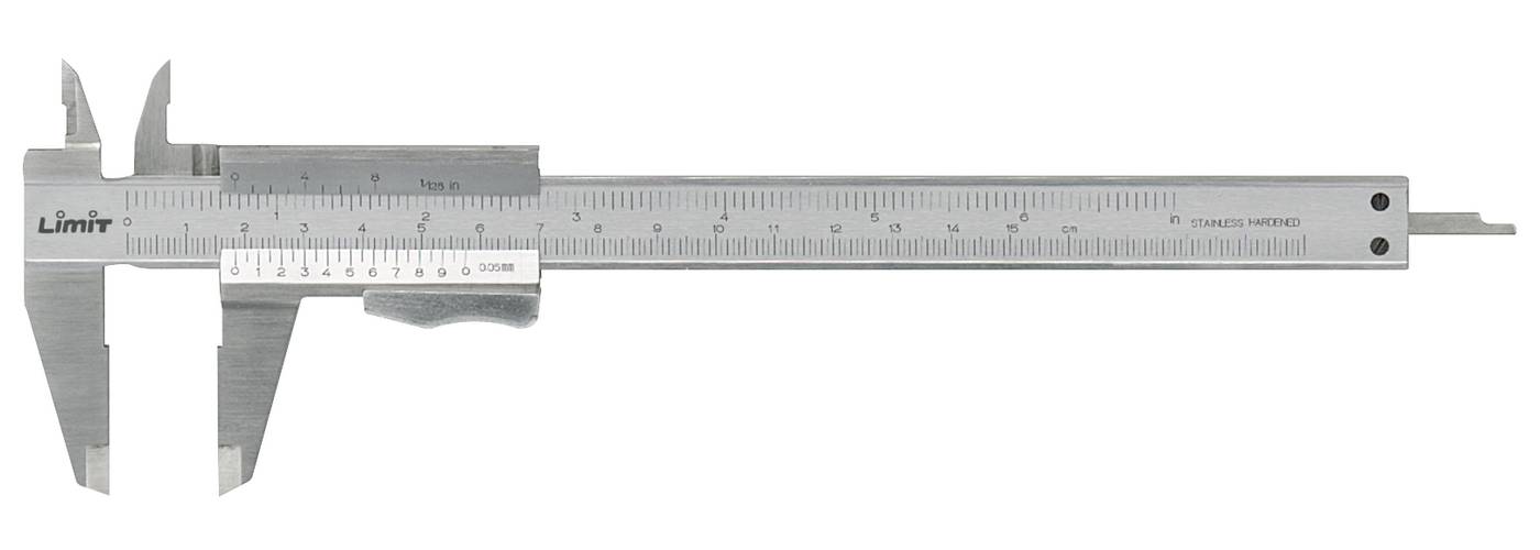 4-funktion. Skjutmått tillverkad av härdat rostfirtt stål med mattförkromat skala. Skjutmåttet mäter både innediameter, ytterdiameter, höjd och djup. Den är graderad i mm och eng. tum. Nonieskala för 1/128'' och 1/20 mm av 39 mm längd. Enligt DIN 862 standard.
